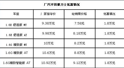 近日,筆者從廣汽豐田4S店了解到,雅力士1.6排量車型全系優惠1.8萬元,但是現車顏色不全。