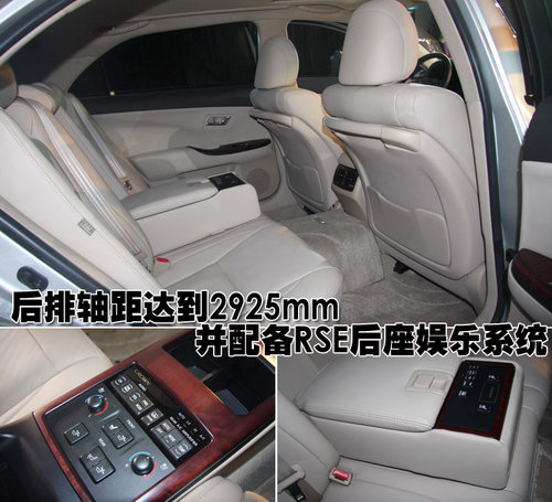 新皇冠的車身軸距為2925mm,為后排的乘坐者提供了充足的空間。可在行駛中觀賞DVD的RSE后座娛樂系統是新皇冠的一大賣點。相對較為復雜的后排控制按鈕對于高端的消費者而言,需要充足的時間去適應和學習。