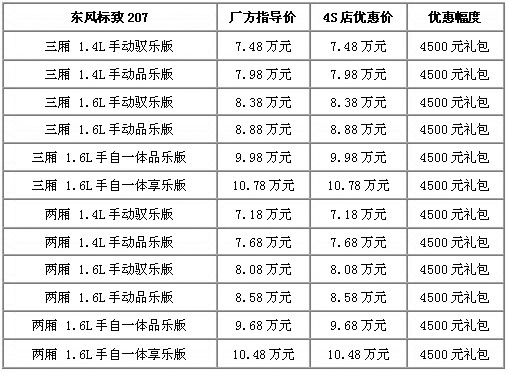 近日,車天下編輯從云南都市車迷寶獅標致專營店獲悉,目前購標致207全系車型,不但可以享受全現車供應,更能享受到4500元隨車大禮包贈送。這在今年的年末顯得難能可貴,具體車型及詳細優惠政策,如下表: