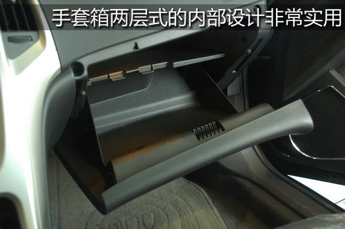 英朗的手套箱實用性非常強,內部采用了上下分層式的設計,上部可以放一些紙張之類的物品,下部則是可以承裝體積稍大的物品,手套箱中還帶有硬幣卡槽。