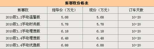 新賽歐展車已經全面到達各地4S店,交訂金2000元-5000元不等可以訂車。最早可以在20號之前提車,最晚月底之前也可以提現車。有的一級城市現在就有現車可提,不過車型和顏色還是不太齊全。