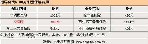 以車身全價購買保險的伊蘭特悅動,在第三者責任險保額為50萬元的情況下,保險的全價在5005元,而在車身價優惠后,保險的費用會有一定的下調,但是下滑幅度并不會非常大。