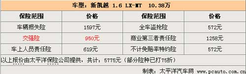 保險費用在車主的用車成本中是除油耗以外的第二大頭。本次對比的幾臺車都是在10萬價位,而保險費用與車輛的價格是相匹配的,所以在保險費用上面的價格差異不大。指導(dǎo)價為10.38萬的新凱越 1.6 LX-MT在購買了50萬第三者責(zé)任險,車上人員責(zé)任險購買5萬元的保額以后,一年下來的保險費用在打8折以后需要5775元。