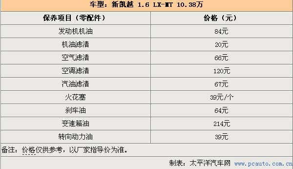 凱越保養(yǎng)周期為5000公里,保修為2年或者6萬公里。首保在5000公里之內(nèi)保養(yǎng),之后每5000公里保養(yǎng)一次。更換機油機濾的常規(guī)保養(yǎng)為161元,在行駛到6萬公里時需要做一次比較大的保養(yǎng)價格為868元,凱越平均一年兩萬公里保養(yǎng)費用大概1334元。