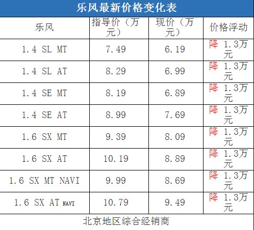 樂(lè)風(fēng)SL車(chē)型與SE車(chē)型的差價(jià)為7000元,在配置上SE車(chē)型增加了車(chē)內(nèi)中控鎖、遙控鑰匙、后視鏡電動(dòng)調(diào)節(jié)和音響揚(yáng)聲器;作為一款主打性價(jià)比的小車(chē)而言,基本款的樂(lè)風(fēng)就可以滿足一般家用消費(fèi)者的需要。而樂(lè)風(fēng)1.6L排量車(chē)型的定價(jià)在小型車(chē)中不論是從性能還是從配置上來(lái)說(shuō)競(jìng)爭(zhēng)力都不明顯。