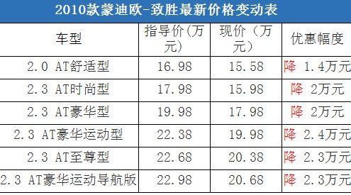 近日,編輯從長安福特北京綜合經(jīng)銷商處了解到,蒙迪歐-致勝的現(xiàn)車比較充足,目前購車最高可以優(yōu)惠2.4萬元現(xiàn)金,與去年末的降價幅度持平。據(jù)經(jīng)銷商透露,消費(fèi)者要想以這個價格提車,需要在店內(nèi)做購車一條龍服務(wù),其中車輛四項基本保險的折扣為9折。以下是蒙迪歐-致勝最新價格變化表: