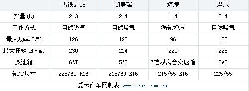 通過數(shù)據(jù)的直接比對(duì),最大的好處就直觀的反映出各車型之間的配置差距。