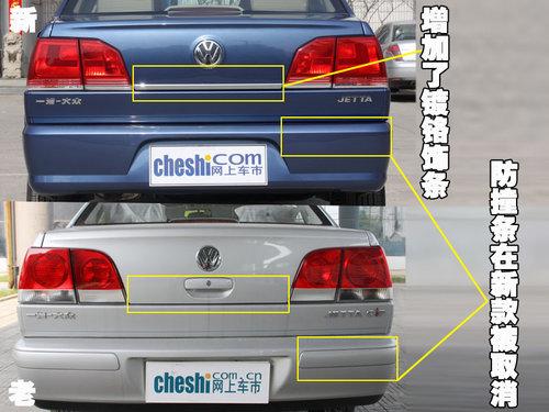 尾部整體造型也沒有什么變化,細節之處有一些不同。大燈造型變得更加尖銳,尾燈燈光造型也由圓形變為“L”型;大眾LOGO下方取消了后備箱拉手,并增加了一條鍍鉻飾條;還有保險杠的防撞條也取消了,和前保險杠保持了一直風格。