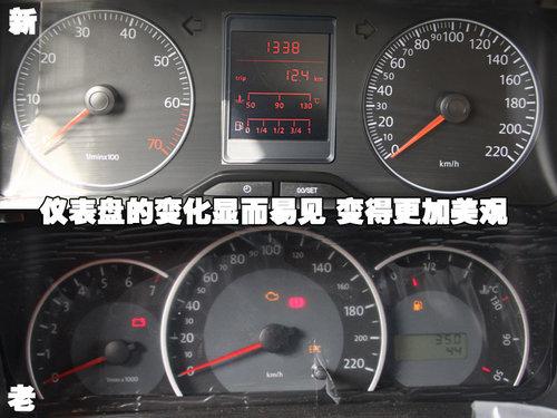新老捷達內飾最大的變化莫過于這臺組合儀表,將行駛里程、水溫表及油量顯示集中在一塊液晶屏中,看著漂亮、使用也很方便。溫度表在50度及90度及130度有標注,90度為捷達發動機正常工作溫度值,如果到130度就提示已出現故障了。油表共分為4個刻度,可以時刻告訴駕駛員油量的變化。新款捷達將轉速表與速度表左右對稱分開,更符合現代汽車設計觀念。
