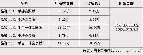 據北京斯柯達經銷店銷售人員介紹,由于3月8日婦女節的將要來臨,店內對晶銳車型的優惠政策進行了加大。全系車型均有1.6萬元的優惠,其中包括了1萬元的現金優惠以及價值6000元的大禮包。店內晶銳全系有現車。