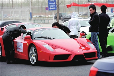 昨天是北京國際車展專業觀眾日的第一天。展館外的花博會停車場上,停了約50輛超級跑車,寶馬、法拉利、保時捷、奧迪、奔馳等豪華車品牌悉數到場,無意中成了一個小型“豪華車展”,零距離接觸跑車的快感,吸引了不少路人和看展人的視線。