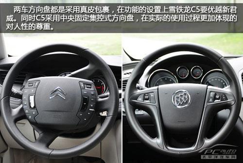 由于此次對比的車型是新君威2.4L 旗艦版和雪鐵龍C5 2.3L尊雅型,所以在有些配置上C5要低于新君威,這是可以理解的必定有價格的差別。