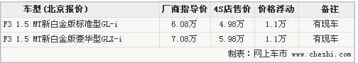 比亞迪F3車型自上市以來就廣受人們的關注,在推出多款升級改款版本后,比亞迪F3憑借著更豐富的配置,在該級別車型中占領著比較領先的地位。網上車市近日走訪了北京地區比亞迪4S店,了解到比亞迪F3車型的價格有大幅度的跳水。