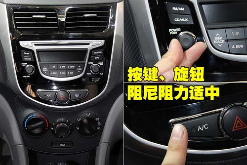 北京現代Verna的中控臺面板采用類金屬涂裝,整體設計透露著運動時尚的氣息,中控臺的各按鍵、旋鈕在使用中各項調節功能均可準確到位。