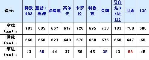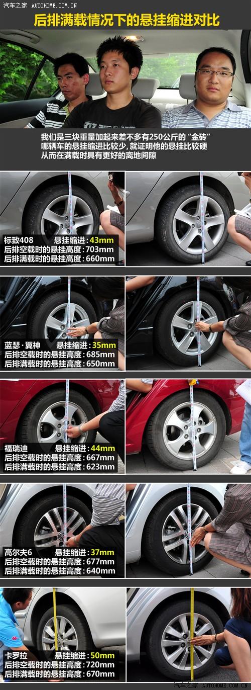 為什么進行懸掛縮進的對比呢?因為緊湊型車大部分都是作為家庭用車,而且因為我們的車輛保有率還不是很高,所以經常一車多用,后排坐滿乘員的情況并不稀奇,甚至當做貨車使用也不是沒有可能,而太軟的懸掛在面對這種大強度的承載時就會出現(xiàn)“塌屁股”的現(xiàn)象,這也就是為什么捷達、邁騰、天籟等車型出現(xiàn)塌屁股的重要原因。