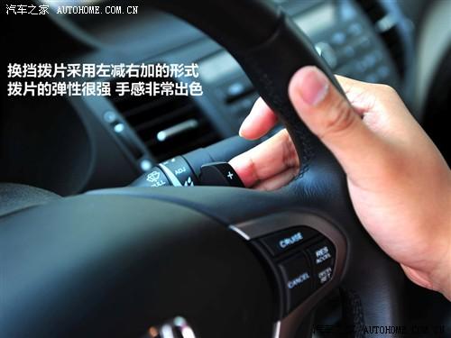 思鉑睿的真皮方向盤不僅手感十分出色,其功能也十分強大。音響控制、定速巡航、藍牙電話和行車信息這些功能都可以直接在方向盤上操作,使駕駛員可以更專注于駕駛。藏在方向盤后面的換擋撥片采用左減右加的形式,撥片的回彈力度很強,手感非常出色。