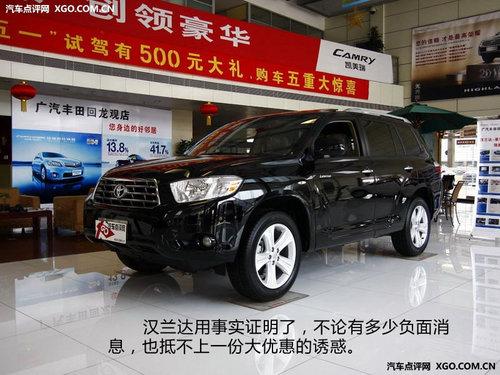 召回門之后,豐田全系產品都試圖用降價來挽回頹勢。您還別說,“優惠甩賣”這招對中國人還真管用——甭管之前有多少負面,漢蘭達依然穩居銷量榜第四。