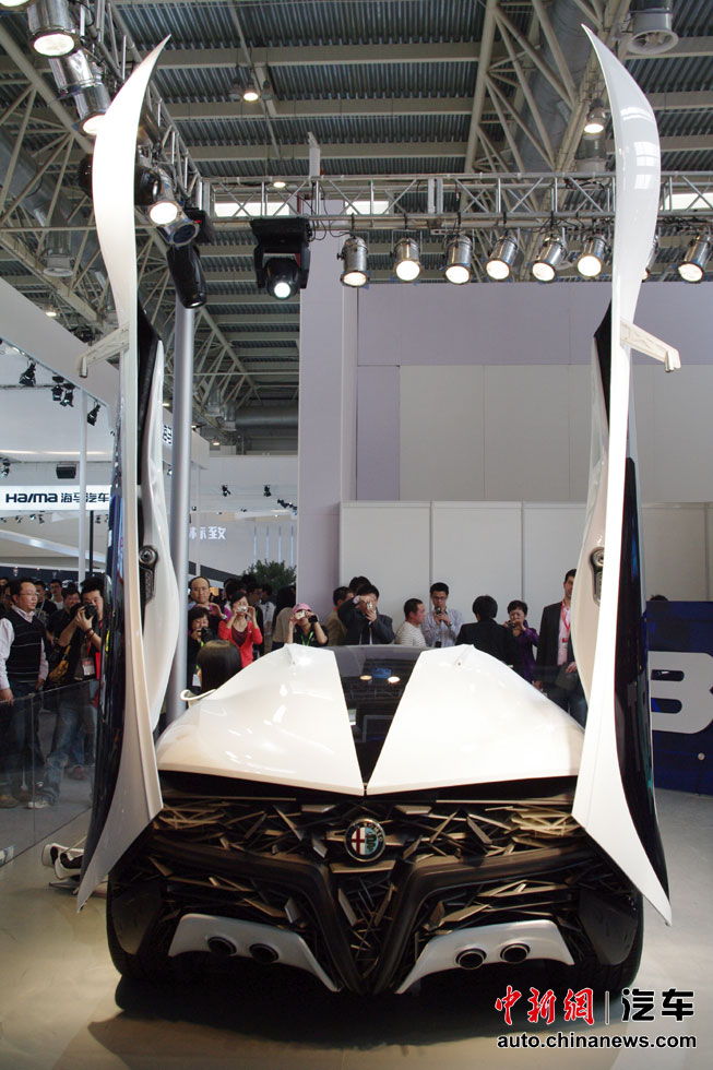 在人流如織的海外汽車巨頭的展館里,天價豪車成了當(dāng)仁不讓的最搶眼明星,相形之下即使再靚麗的車模也黯然失色。圖為概念車Bertone Pandion