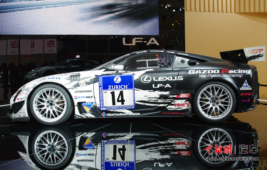 在人流如織的海外汽車巨頭的展館里,天價豪車成了當仁不讓的最搶眼明星,相形之下即使再靚麗的車模也黯然失色。圖為雷克薩斯LF-A