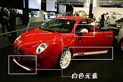 Veloce的外觀與之前的描繪圖有所區別,因該說好看得多。Veloce在標準版MiTo單一紅色調的基礎上,將前唇、尾翼、反光鏡和側裙等部分涂成白色,活力十足,而前擋風玻璃上檐的“意大利國旗”,很是醒目。