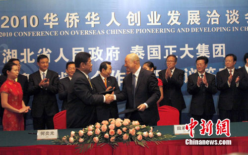 為加強湖北省與正大集團合作,擴大湖北省僑商企業的國際影響,湖北省僑商協會15日還聘請謝國民擔任湖北省僑商協會永久名譽會長。(完)