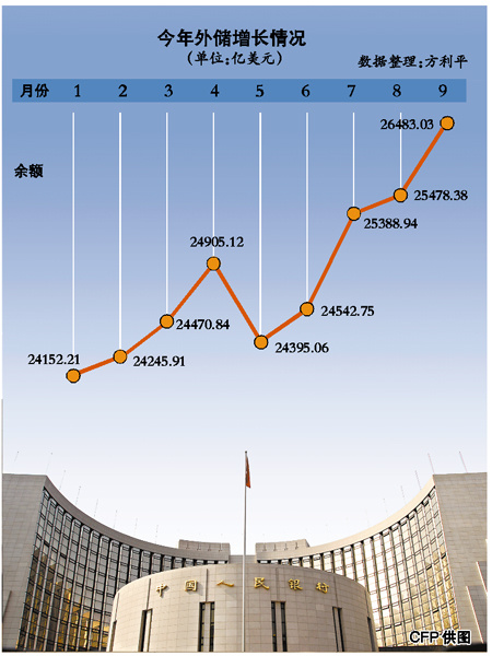 數據顯示,9月末,國家外匯儲備余額為26483億美元,第三季度,外匯儲備新增1840.25億美元,增長規模創下季度新高,規模達到整個上半年的3.3倍。7、8、9月新增外匯儲備分別達846.19億、89.44億和1004.65億美元,其中7月和9月,分別創下單月歷史最高和次高水平。