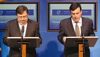 此前一直拒絕求援的愛爾蘭財長勒尼漢承認,當地銀行業問題過于嚴重,單憑國家一己之力無法解決。不過,民眾卻反對政府向外求援,亦有工會計劃于周末發動游行反對緊縮開支。當地主要反對黨考慮對政府提出不信任動議。