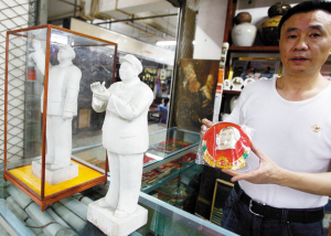 國慶60周年紀念日尚未到來,相關題材藏品集體升溫。近日,記者走訪發(fā)現,我市收藏市場上又刮起了一陣紅色旋風,毛主席像章、瓷擺件、國慶紀念章等紅色題材紀念品又受到了藏家的追捧,其價格也被炒得直線飆升。品相好的毛主席像章現在市價高達上千元,產于文革時期的毛主席瓷塑像沒有上萬元根本拿不下來。