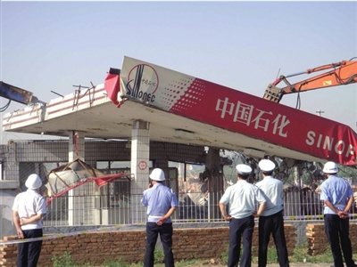 中石化北京分公司相關負責人介紹,該加油站此前被列入一條在建輕軌的規劃范圍,公司準備與相關部門商討采取“拆一還一,先建后拆”的模式,但一直未能和相關部門達成協議。此次加油站突遭強拆,中石化北京分公司方面表示難以接受。