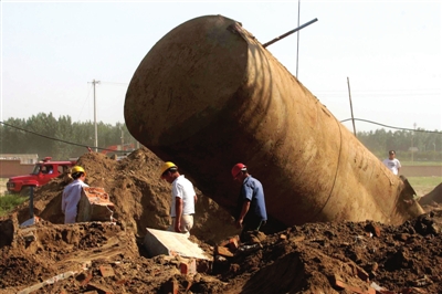 早7點左右,加油站負責人趕到現場并報警。加油站負責人董女士說,站內有4個地下油罐,拆遷時,4油罐內還有2000多升油品。“這種強拆法是很危險的。”董女士說。至昨天下午5點,強拆仍在繼續。