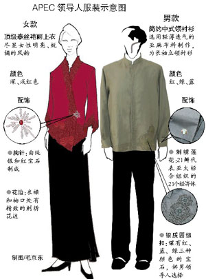 按照慣例,APEC領導人會穿什么樣的服飾亮相向來被視為“高度機密”。但這次籌委會一反傳統,預先展示為與會的21國領導人設計的服飾,讓海內外媒體先睹為快。