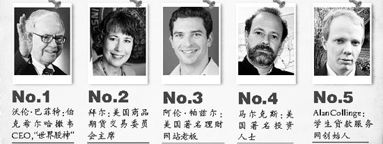 6魯賓尼:紐約大學教授7馬約拉·卡特:環保主義者8格林斯潘:前美聯儲主席9英林:美銀行家協會總裁10AngeloMozilo:美國全國金融公司前任首席執行官11富爾德:雷曼兄弟前CEO