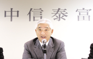 中信泰富有限公司25日公布,由于外匯合同所導致的變現及市場公允值的稅后虧損對公司溢利造成嚴重影響,中信泰富去年稅后股東應占凈虧損為126.62億港元。董事會建議不派發末期股息,因此全年每股派息為中期股息的0.3港元。另外不派給董事們2008年全年的花紅。圖為榮智健在業績發布會上。