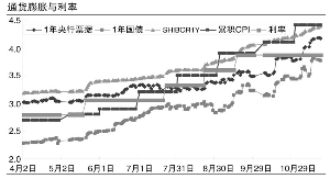 根據目前對CPI的估算,年初至11月底,預計CPI累計上升4.6%;而根據預測,2007年CPI將達到4.7%,如果不加息,那么真實利率將為-1%(3.87%×0.95-4.7%)。而且,如果通貨膨脹沒有如央行預期下降,那么央行將面臨更大的升息壓力。