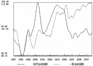 從10月份綜合反映宏觀經濟運行情況的一致指數走勢看,10月份當月,在組成一致合成指數的五個指標中,經季節調整后的固定資產投資、工業增加值和財政收入三個指標的增速小幅上升,社會消費品零售總額實際增速和發電量增速明顯回落。受后兩個指標明顯回落的影響,一致合成指數走勢企穩。一致指數在高位企穩,大體反映了年初以來先行指數回落的變化。