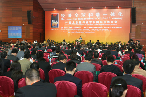 中新網12月23日電 2007年12月13日,由亞太總裁協會、廣州市人民政府主辦,廣州市外經貿局和亞太財富(北京)經濟咨詢中心承辦的“第三屆亞太總裁與省市長國際合作大會”在廣州白云國際會議中心召開,中共廣東省委常委、廣州市委書記朱小丹,廣州市委副書記、市長張廣寧出席了大會。