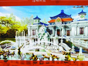 1月8日,在徐文榮辦公室內,張貼著未來的橫店圓明新園的景點效果圖。