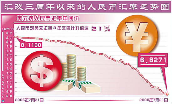 圖:匯改3年 人民幣對美元升值幅度已超過21% 圖片來源:錢江晚報