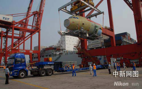 7月24日,空客A320系列飛機天津總裝線首批大部件從德國漢堡經海運抵達天津。胡志強 攝影