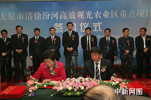 中新網(wǎng)3月22日電(劉海英 張?jiān)?今日是山西清徐人的好日子。當(dāng)?shù)馗咝в^光農(nóng)業(yè)區(qū)重點(diǎn)項(xiàng)目簽約儀式在此間舉行,九三學(xué)社山西省委、山西省農(nóng)科院畜牧獸醫(yī)所等單位與清徐縣簽訂7個合作項(xiàng)目,涉及農(nóng)業(yè)技術(shù)服務(wù)、面粉加工、珍稀苗木種植、肉制品加工等領(lǐng)域。