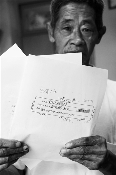 陳昌德的情況并非特例。記者查閱當(dāng)年同一月份農(nóng)民繳納電費(fèi)的單據(jù)后發(fā)現(xiàn),孔目村2組的周友清,2007年5月只用電2度,繳納電費(fèi)62.4元,平均每度電31.2元;同為2組的范治乾當(dāng)月只用電3度,繳納電費(fèi)62.9元,平均每度電20.9元。
