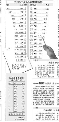 排行榜顯示,北京行政機關的透明度在31個省份中位居第三位,福建和寧夏分列前兩位。