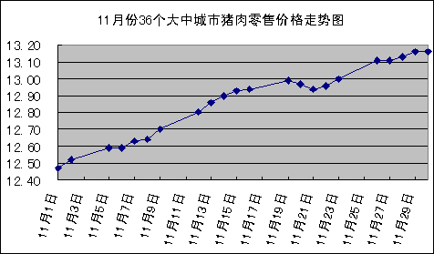 中新網(wǎng)12月3日電 國(guó)家發(fā)改委網(wǎng)站消息稱,據(jù)國(guó)家發(fā)展改革委價(jià)格監(jiān)測(cè)中心監(jiān)測(cè),上周(11.26-11.30,下同)全國(guó)36個(gè)大中城市豬肉(精瘦肉)集市平均零售價(jià)格每500克為13.13元,比上期(11.19-11.23,下同)上漲1.23%。