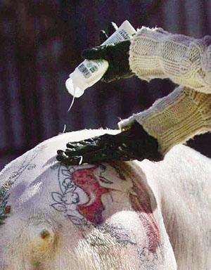 文身師正在為名為“美人魚”的豬文身 攝/記者陸西