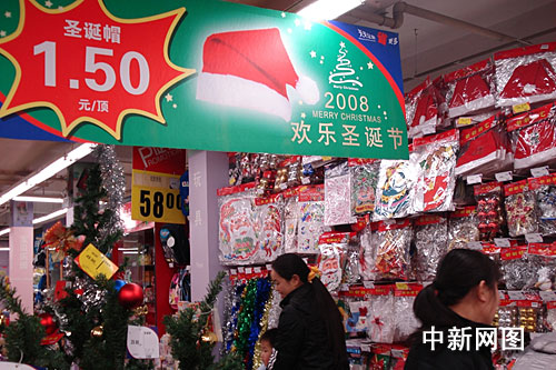 “像這個一米多高的圣誕樹,去年要賣一百左右,現(xiàn)在搞優(yōu)惠促銷,五十塊錢都不到。”杭州市延安路某商店的工作人員說,商店借節(jié)造勢,商品往往熱銷,但今年由于遭遇金融危機(jī),商家只好搞促銷,并紛紛推出優(yōu)惠折扣來刺激消費(fèi)。
