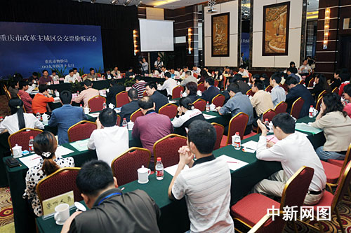 4月17日,重慶市舉行改革主城區(qū)公交票價(jià)聽證會(huì),涉及主城800萬市民的出行問題,該市人大代表、市政協(xié)委員、消費(fèi)者和學(xué)生代表在聽證會(huì)上發(fā)表了意見。下午聽證會(huì)結(jié)束時(shí),十余名重慶市民手舉反公交漲價(jià)T恤站在聽證會(huì)門口反對漲價(jià),引起眾多參會(huì)代表關(guān)注。