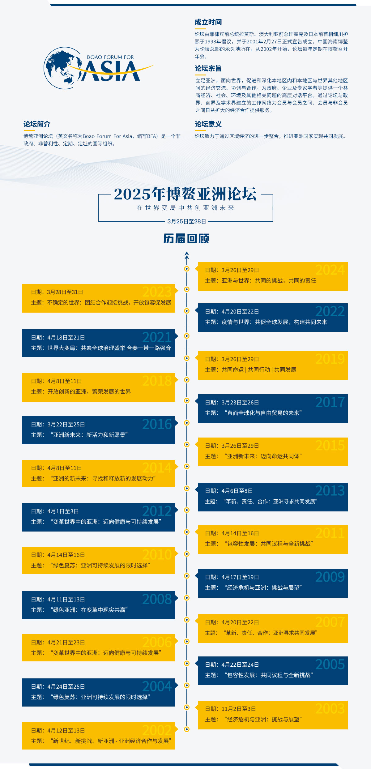 與會各方圍繞本屆年會“在世界變局中共創亞洲未來”這一主題,結合當前亞洲和世界面臨的重大挑戰和緊迫問題,達成廣泛共識。 [詳細]