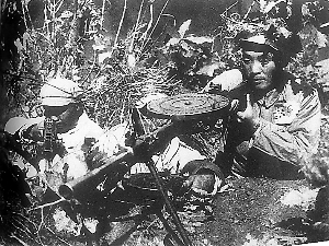 炮火也同時(shí)驚醒了位于4公里外的第45師師部。師長(zhǎng)崔建功飛快地跑上山頂向南眺望,只見十幾里外炸點(diǎn)閃爍成一線的前沿陣地上,有兩個(gè)點(diǎn)亮得格外刺眼。緊隨其后跑上來(lái)的作戰(zhàn)科長(zhǎng)宋新安立即判明:“那是597.9高地和537.7高地北山。”敵人是主攻還是佯攻?通訊中斷,戰(zhàn)斗進(jìn)行了幾個(gè)小時(shí),敵人的作戰(zhàn)企圖、兵力規(guī)模、戰(zhàn)術(shù)手段仍然一概不清。偵察連派人去前線了解情況,第一批人在半路上犧牲了,第二批兩個(gè)人幾經(jīng)周折終于來(lái)到597.9高地的5號(hào)陣地,一看陣地上只剩下一個(gè)戰(zhàn)士了,美軍正蜂擁而來(lái),他倆毫不猶豫立即投入戰(zhàn)斗……