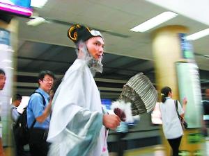 一位還算眉清目秀的年輕男子打扮成諸葛亮的樣子,在地鐵里忽而吟誦,忽而大笑,做出種種引人側(cè)目的動(dòng)作。這是最近風(fēng)靡網(wǎng)絡(luò)的又一個(gè)“神秘人物”。如此裝扮卻為何?是崇拜古人?是有病?或者干脆就是網(wǎng)絡(luò)推手在炒作?由于這位“亮叔”手中拿著一本剛上市的新書,網(wǎng)友們懷疑最后一種的可能性最大。