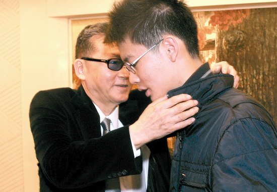 22日中午離開廣州前,李敖、李戡父子一起接受記者專訪。李敖穿黑西裝,戴墨藍色墨鏡,嘴角笑意若有若無,眼神熠熠發(fā)光。李戡戴黑框眼鏡,面孔白皙,穿了件黑外套,整個人顯得更瘦小幾分。